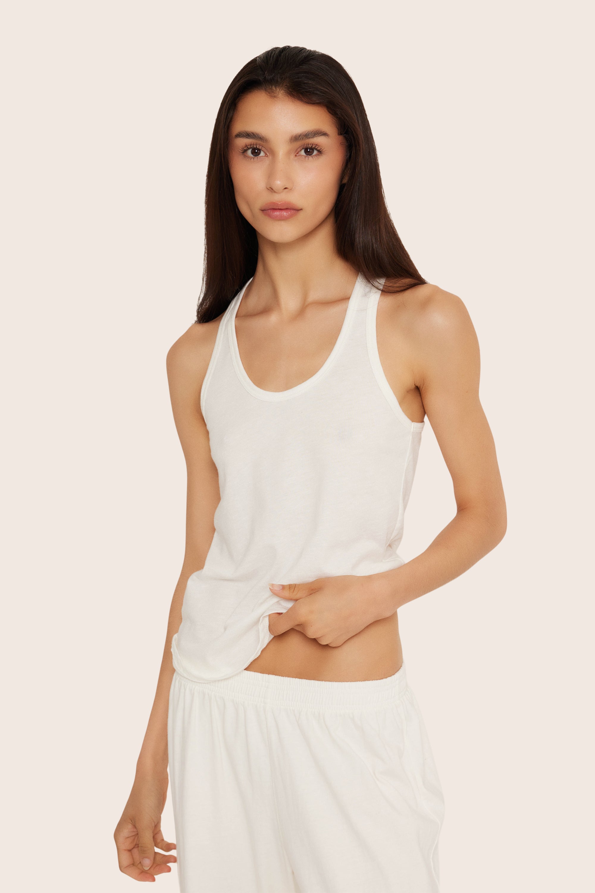 MODEL WEARS CLASSIC COTTON DAILY TEE IN BLANC MODEL WEARS CLASSIC COTTON DAILY TEE IN BLANC
